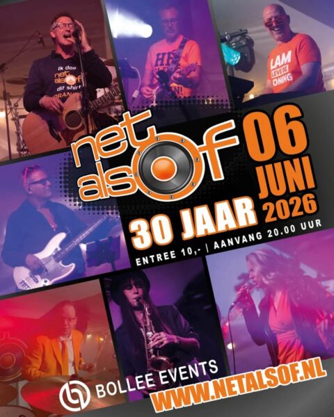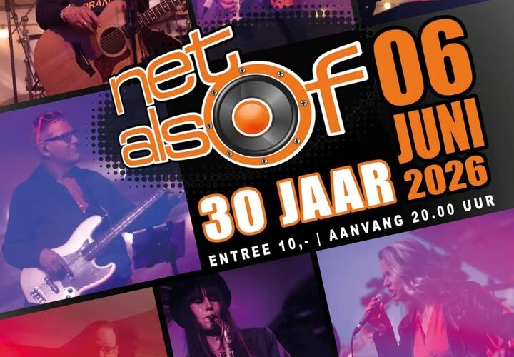 Ooit begon NetAlsof op een zolderkamer met 3 personen, maar nu ruim 30 jaar later is de band uitgegroeid tot een gezellige club van 7 personen. Van gitaar tot piano en van drums tot saxofoon… met hun veelzijdige bezetting zullen diverse bekende hits (van vroeger en nu) voorbij komen.